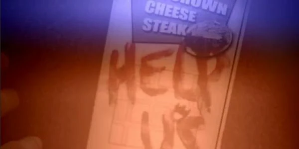 The Crown Cheese Steak flyer has the words "HELP US" written on it in red. | ||||
